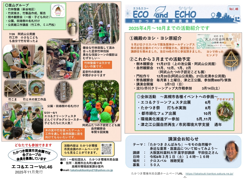 最新号は11月発行 の VOL46 です。講演会のお知らせと市民環境大学の紹介が載っています。